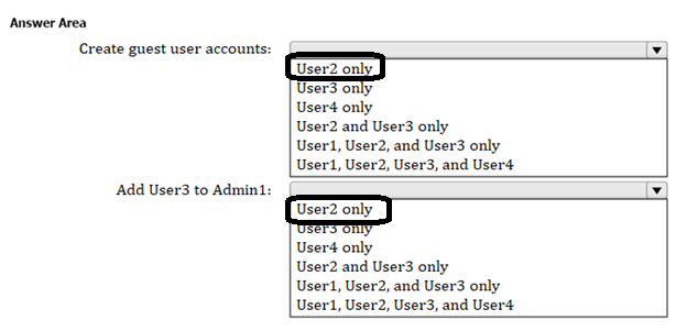 Which users should you identify for each task? To answer, select the appropriate options in the answer area.