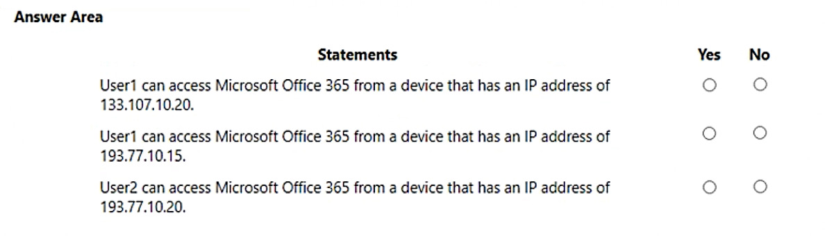 For each of the following statements, select Yes if the statement is true. Otherwise, select No.