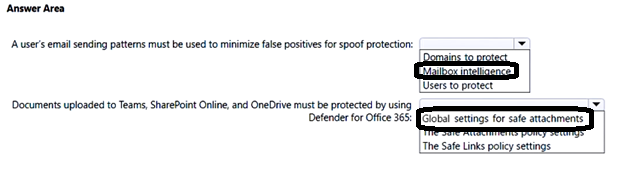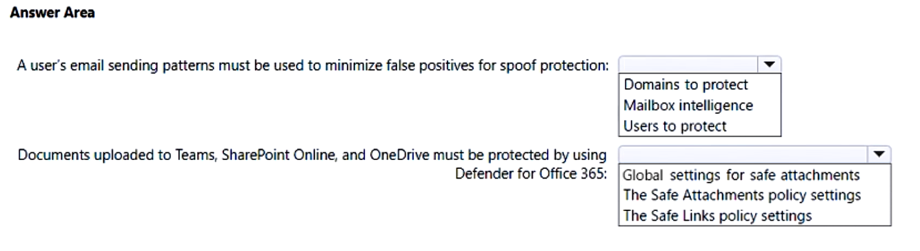 • Documents uploaded to Microsoft Teams, SharePoint Online, and OneDrive must be protected by using Defender for Office 365.