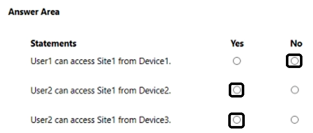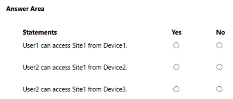 You have a Microsoft 365 E5 subscription that contains a Microsoft SharePoint Online site named Site1 and the users shown in the following table.