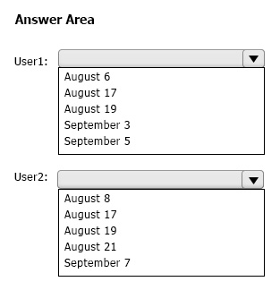 On August 3, you create two users named User1 and User2.
